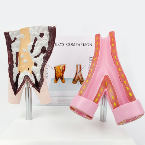 Modelo comparativo de vasos sanguíneos humanos normales y vasos sanguíneos impactados por fumar y el uso de drogas en la ciencia médica