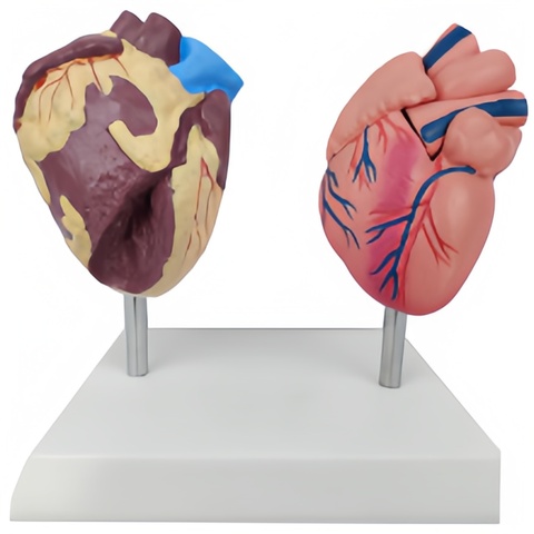 Modelo comparativo del corazón humano normal y el corazón de los drogadictos de los fumadores para la ciencia médica