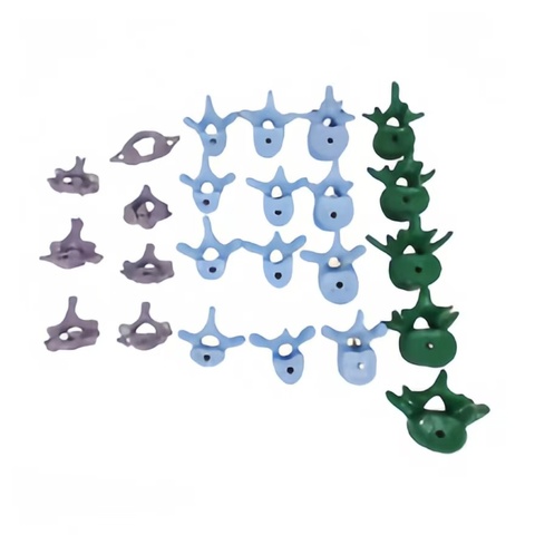 El modelo de columna vertebral humana uno a granel codificado por colores incluye vértebras cervicales y torácicas lumbares para la ciencia médica